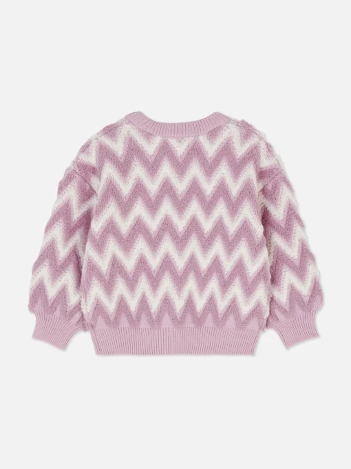 Zig-Zag Pattern Fluffy Knit Sweater